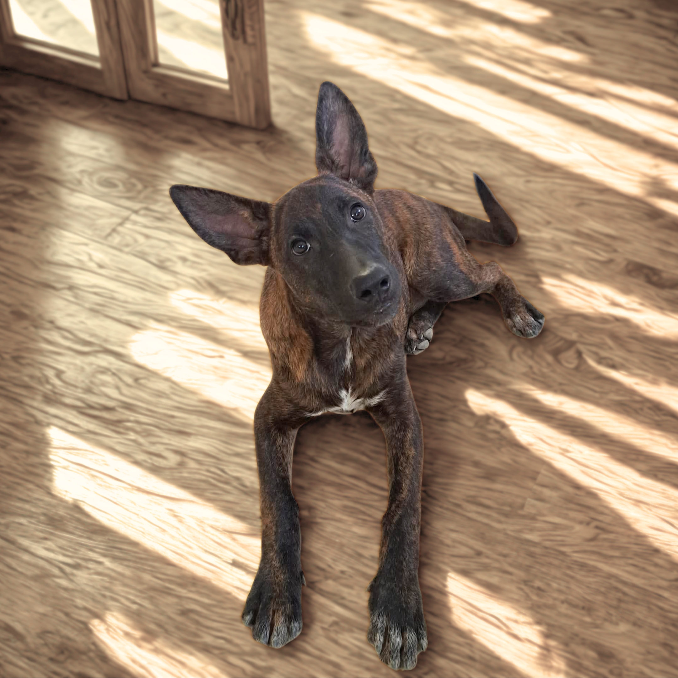 Eros is a handsome brindle male with bright eyes and fabulous upright ears. He walks beautifully on leash, listens well, and gets along with both dogs and cats. He’s steady, friendly, and easy to be around — the kind of dog who adapts quickly and brings a calm, positive energy with him.