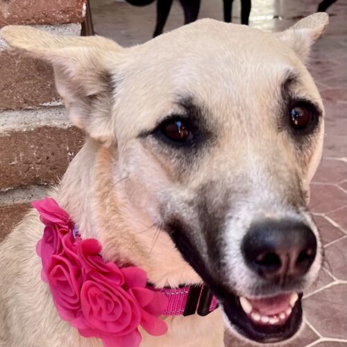 Flora is a wonderfully goofy, sweet, fun pup. Although she may be a bit shy initially, she quickly becomes friendly and affectionate. She gets along wonderfully with all dogs and loves to engage in playtime with her furry companions. Flora enjoys chasing balls and playing with toys. On the leash, she is gentle and appreciates her walks. She's also fond of affection and is content to relax by your side.