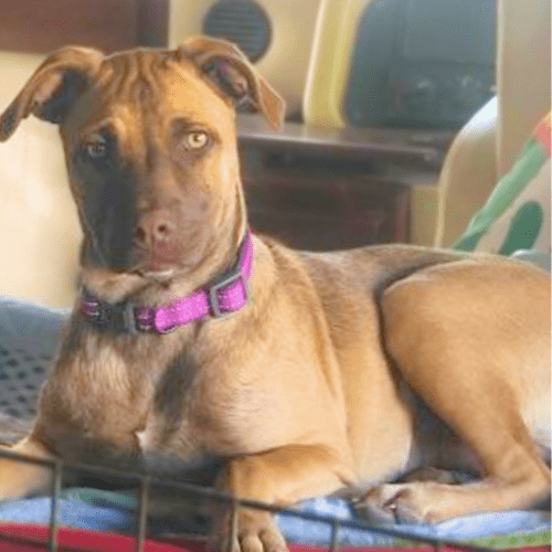 Harlo is my new foster girl and she is an absolutely wonderful pup. From the moment we brought her home she has been an angel. Super chilled and quiet. First night in her kennel she slept through the night. No whining or crying. No accidents in the house. She already goes poop and pee on command! All I need is a treat in my hand. She knows how to sit(with treats) and walks well already on leash. She loves to play with her stuffies and chew her hooves. She hasn't chewed anything else. She loves her beach walks and gets along with all dogs. She is a real cuddle bug! She will make a great addition to any family. She is my 5th foster and I have to say she has been the easiest on so far!! And those beautiful green eyes!!!