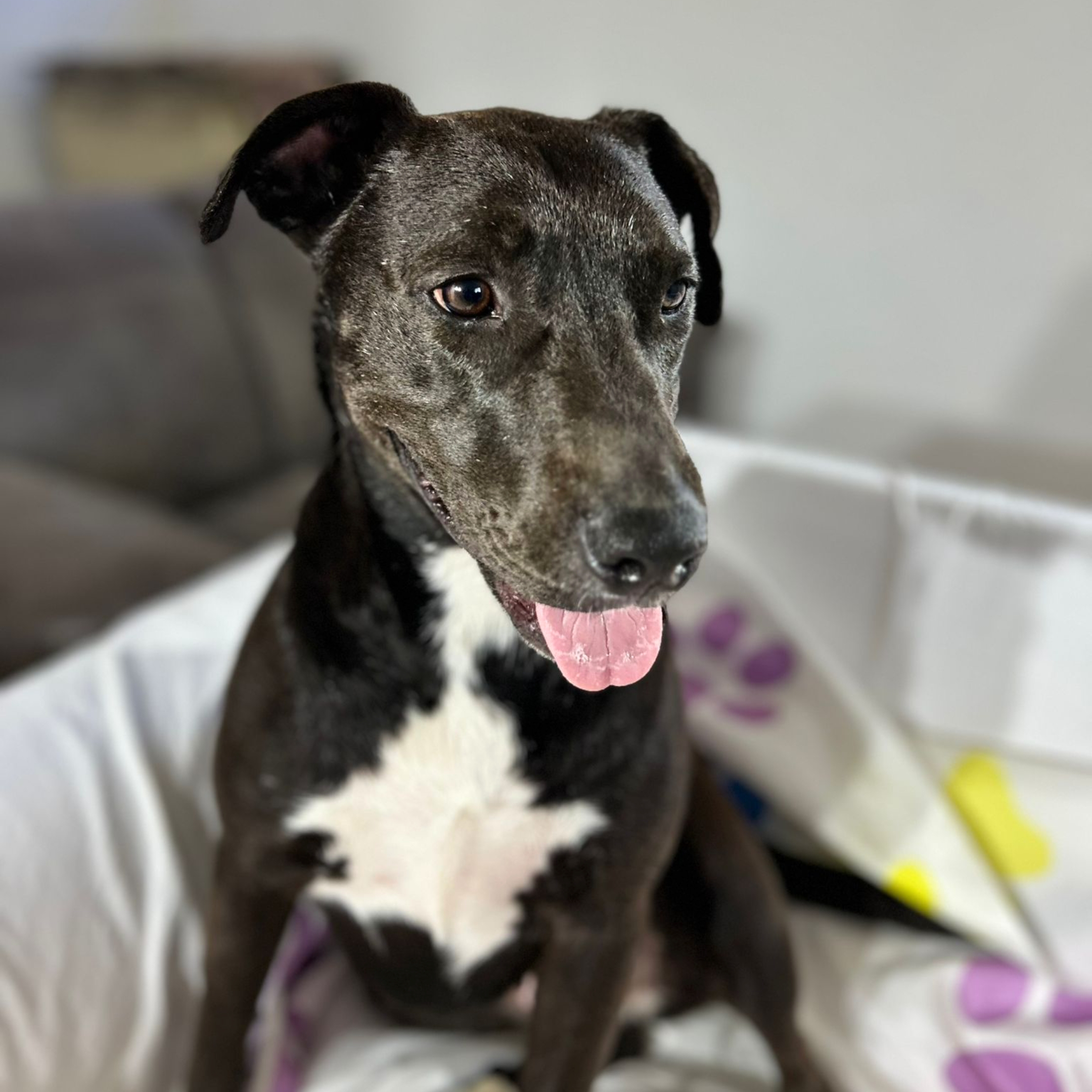 She’s affectionate, engaged, and has that beautiful way of leaning into you like she’s been yours forever. Quiet cuddles? That’s her sweet spot. But she also has a playful side and enjoys time with other dogs, though she can be a bit selective — slow, thoughtful introductions help her feel comfortable and confident.