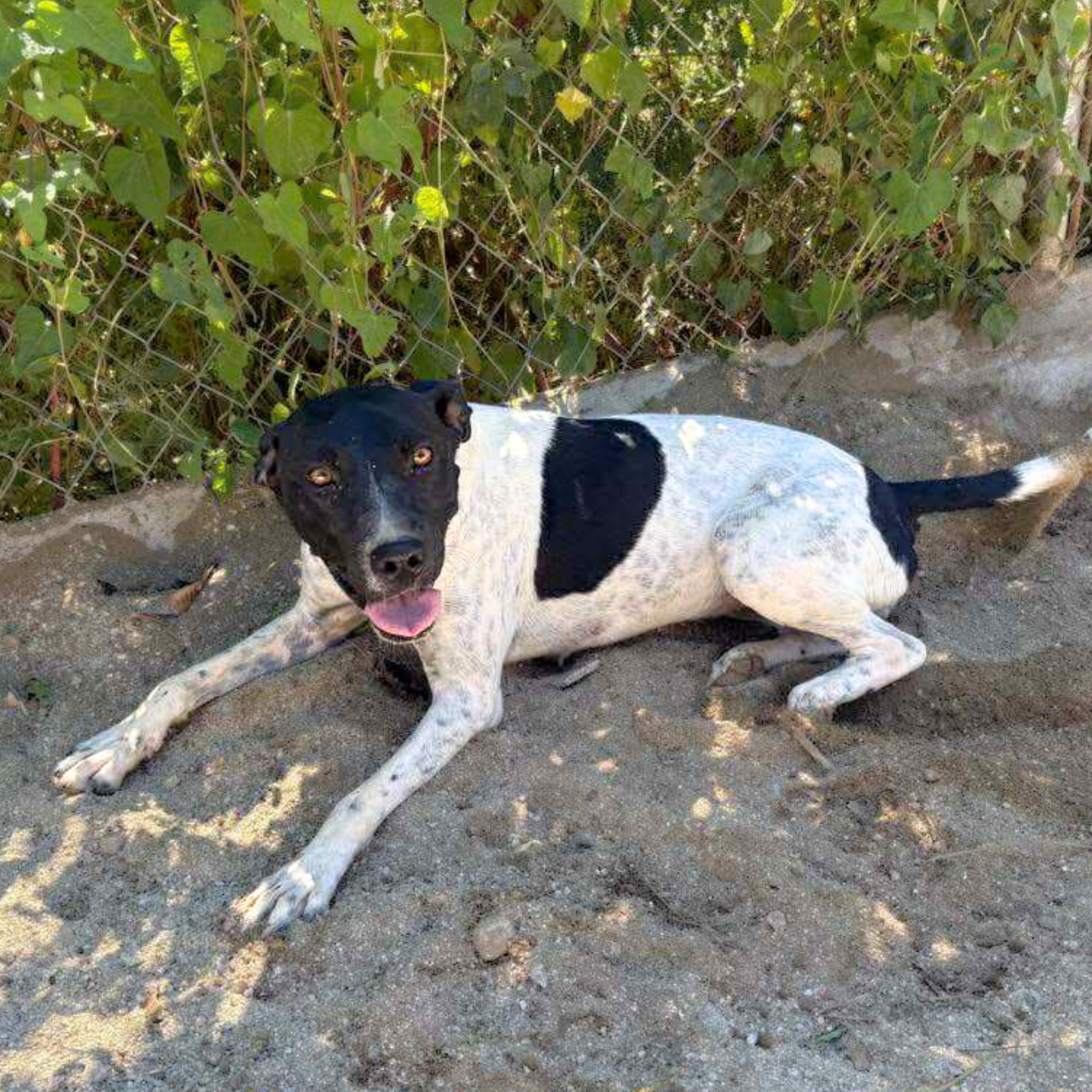 Pinta is a beautiful and unique looking, 2-year-old female dog with a heart full of love and a story of resilience. Rescued from a life where she was tied up and forgotten, this gentle mama is now getting her first real taste of freedom, care, and kindness. Despite her past, Pinta is incredibly sweet and trusting. She’s learning what it means to be cared for and is soaking up every bit of affection she can. Her calm, grateful spirit shines through in everything she does.