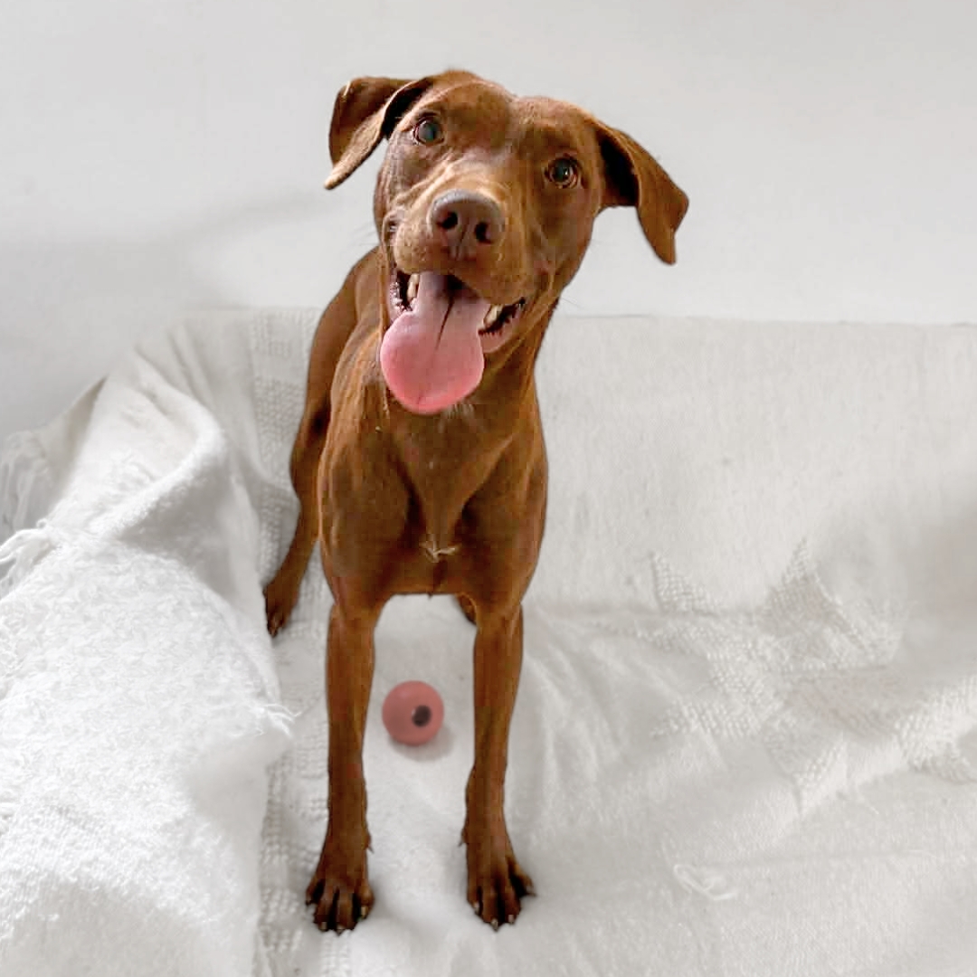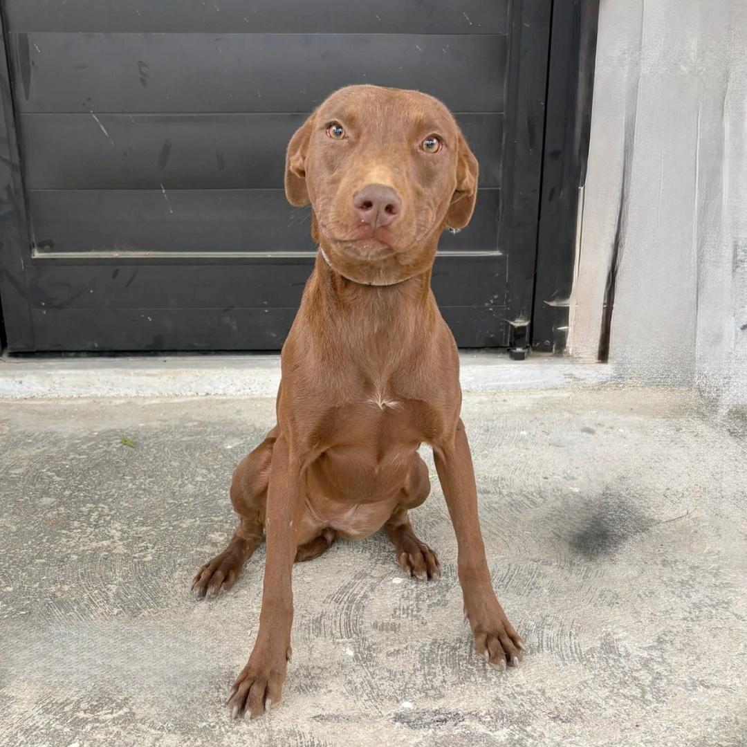 Gabby may be just a pup, but she’s already stealing hearts with her rich chocolate-brown coat, long legs, and soulful eyes that say it all.