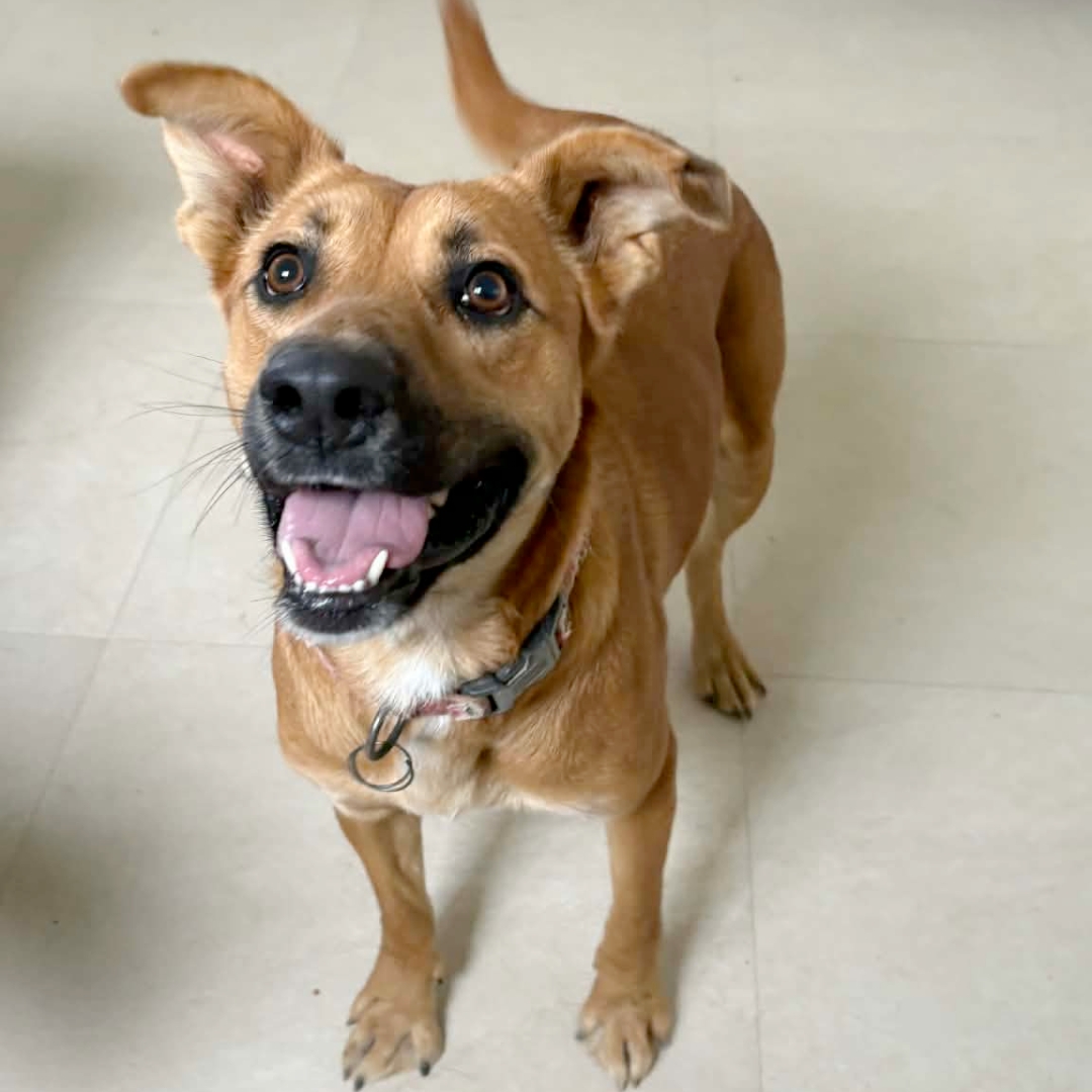 Miela is a beautiful Baja rescue pup with the perfect mix of confidence and kindness. She's gentle, affectionate, and incredibly well-mannered — already house-trained, sleeping soundly indoors through the night, and walking politely on leash with minimal guidance.