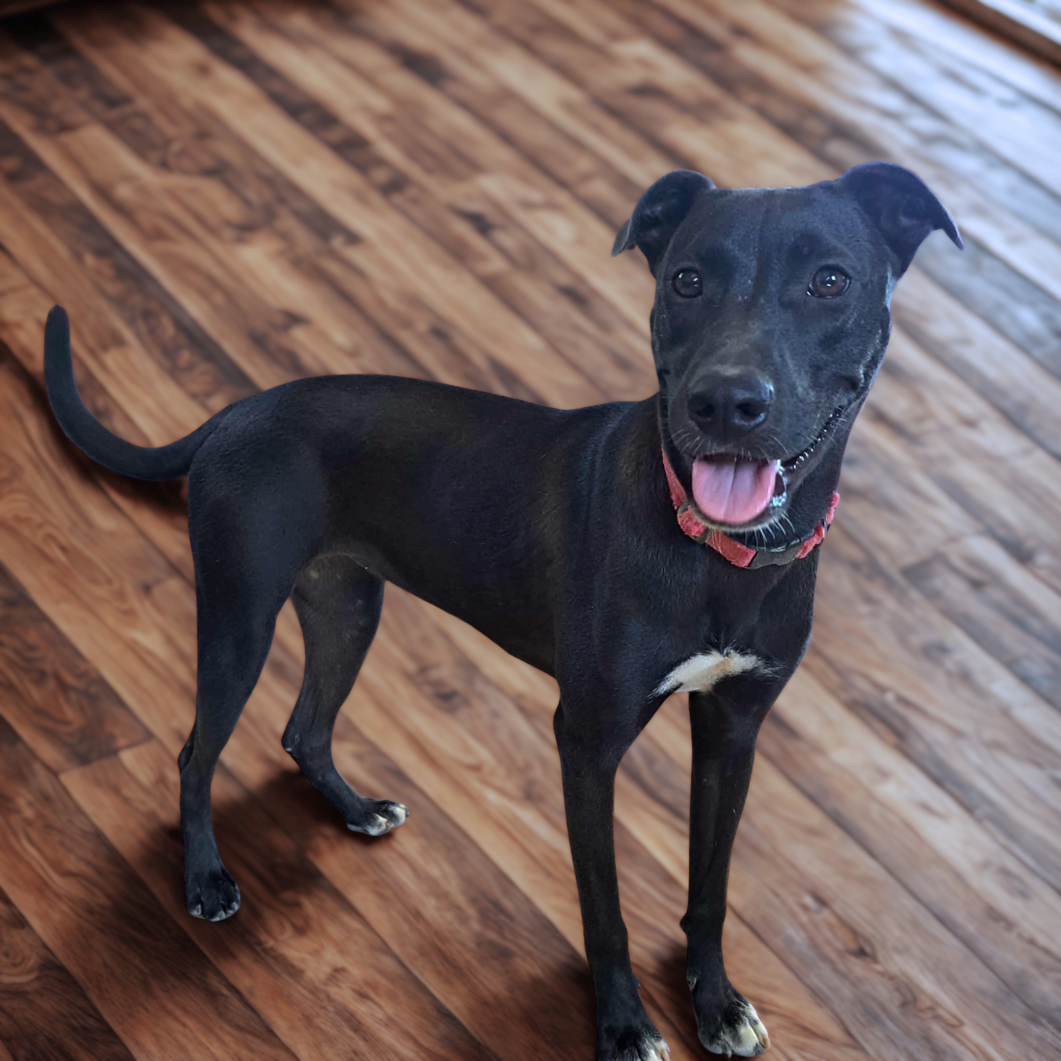 Opal is a beautiful black-coated sweetheart with soft white-tipped paws and a heart full of quiet love. She’s blossoming more every day and has discovered just how much she enjoys spending time with her people. Whether it’s a walk, a cuddle, or simply being nearby, Opal loves the comfort of good company.