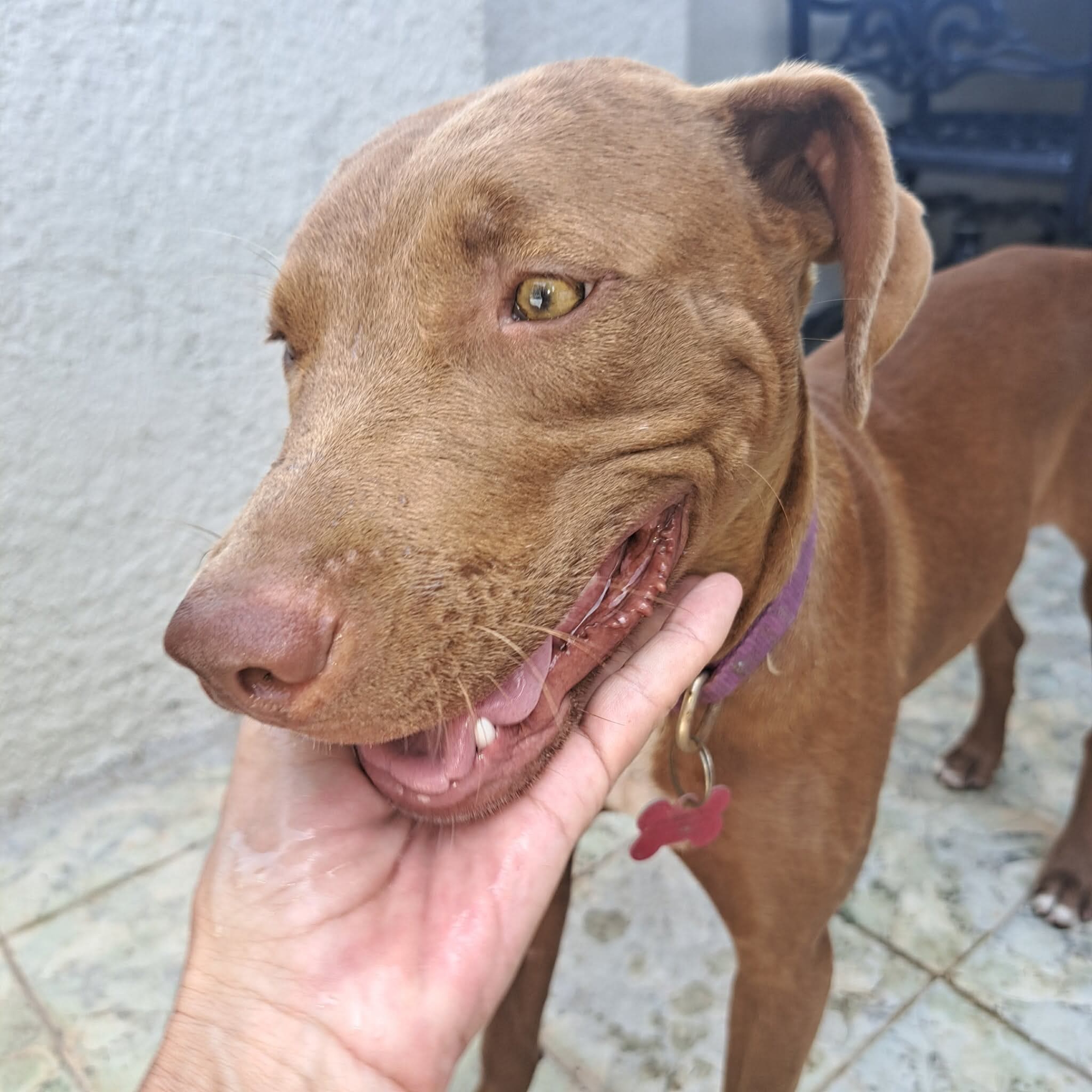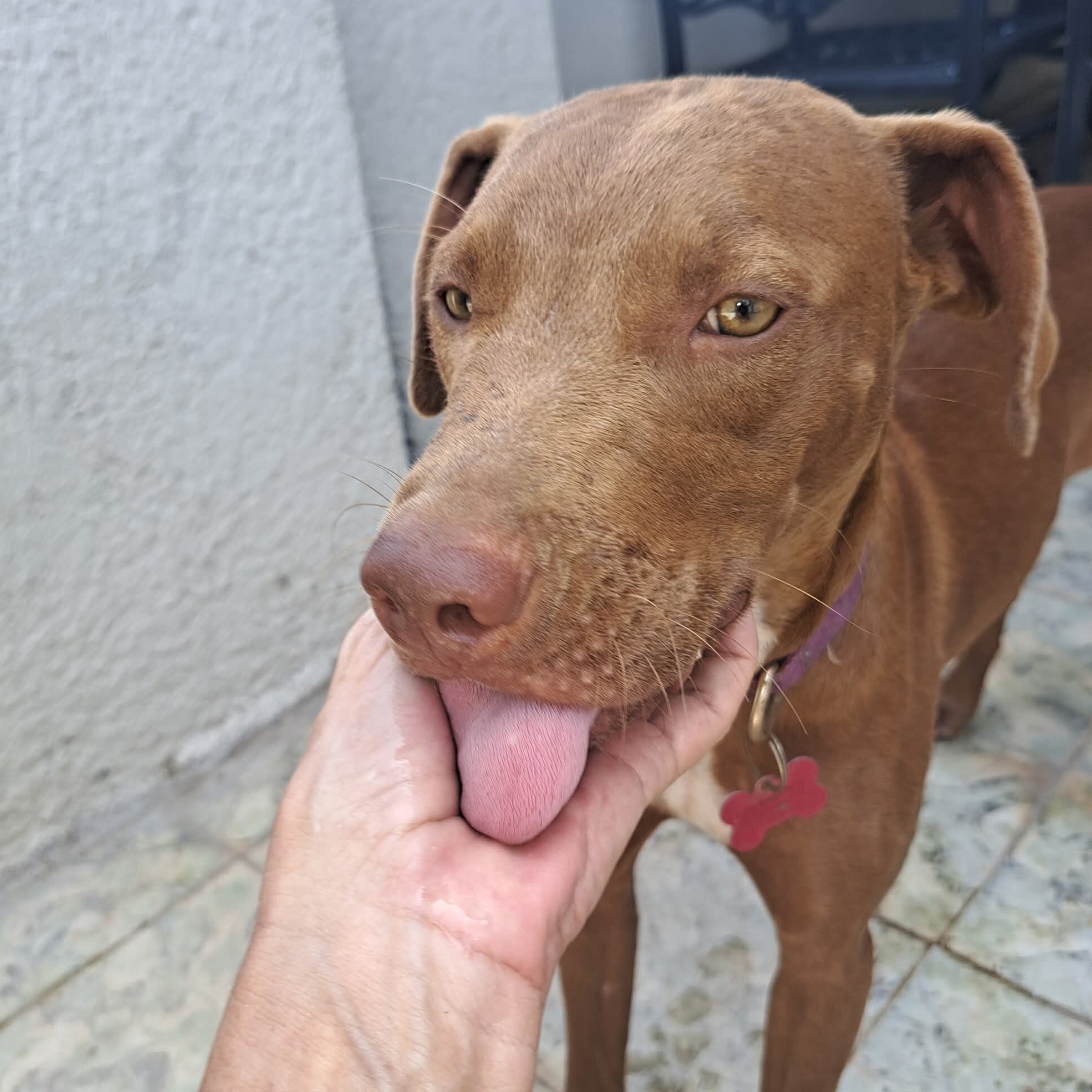 Canella (Queenie) is a sweet, smart, and loving 9-month-old girl. She can be a little shy at first, but once she warms up, she’s incredibly affectionate. She loves beach walks, playing in the water, and is learning quickly with her training.