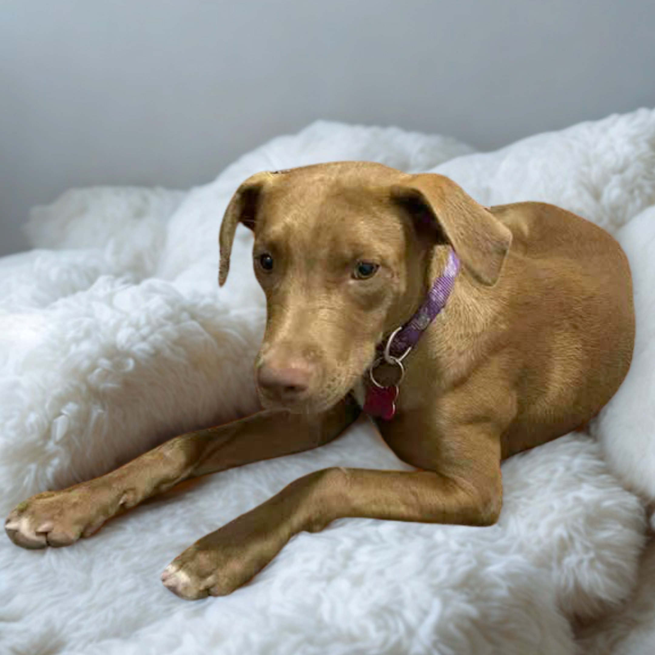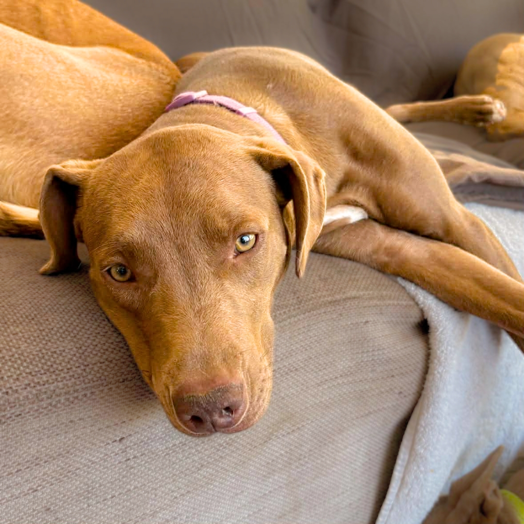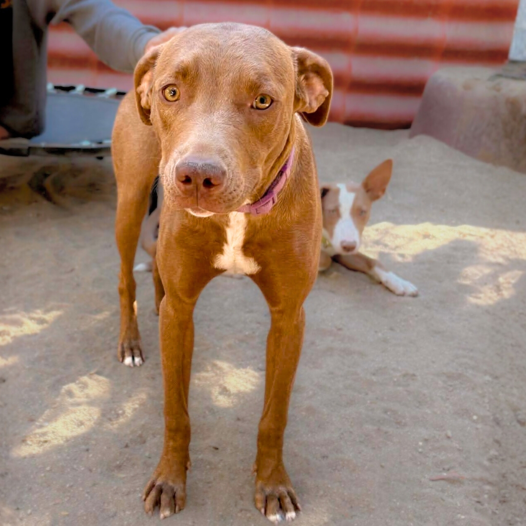 A little shy at first, Queenie soon blossoms into a playful, affectionate companion who loves beach walks, splashing in the water, and soaking up time with her people. She’s eager to bond and even more eager to please, making her a wonderful fit for someone ready to welcome a loyal young dog into their life.