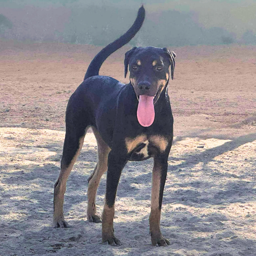 True to his name, Tank is a rough-and-tumble pup who lives life at full throttle and full joy. This black-and-tan cutie has a big personality, a goofy streak a mile wide, and a heart that’s just as big.